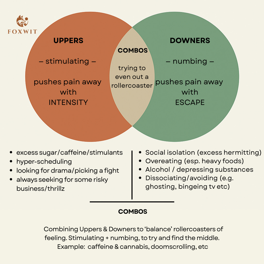 Sometimes we’ve learned how to process our emotions in ways that further our growth & our peace, sometimes we just ‘manage’ those feelings by repressing, avoiding, buying a new car, dyeing our hair etc.